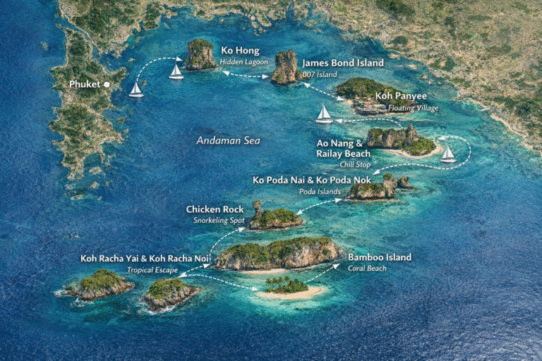 James Bond Island – kultowa wyspa z planu „Człowieka ze złotym pistoletem”, odwiedzana wcześnie rano, zanim pojawią się tłumy.
